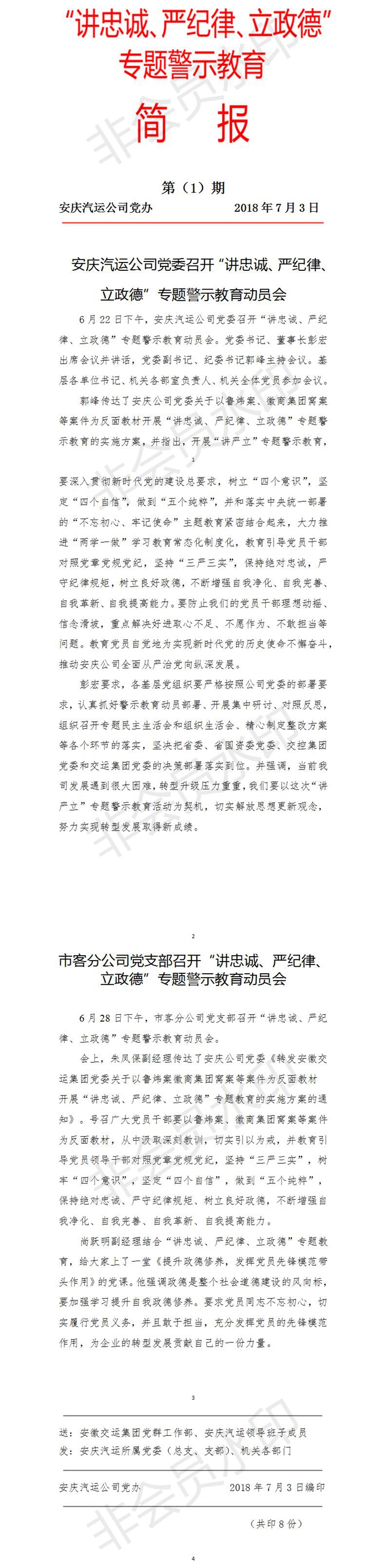 公司“講忠誠(chéng)、嚴(yán)紀(jì)律、立政德”專題警示教育簡(jiǎn)報(bào)(第1期)