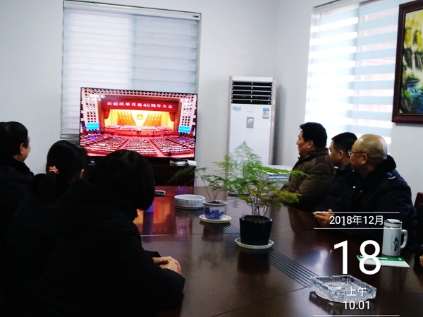 上午10時,大家安排好自已的崗位工作,端正坐在電腦、電視前,或者拿出手機,聚精會神地觀看了慶祝改革開放四十周年大會盛況。