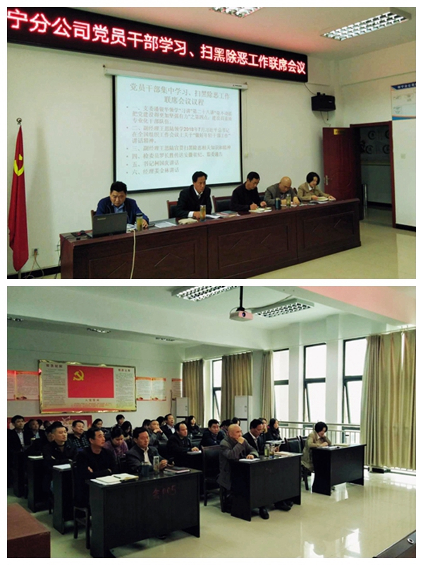 4月29日下午,懷寧分公司召開(kāi)黨員干部集中學(xué)習(xí)及掃黑除惡工作聯(lián)席會(huì)議。
