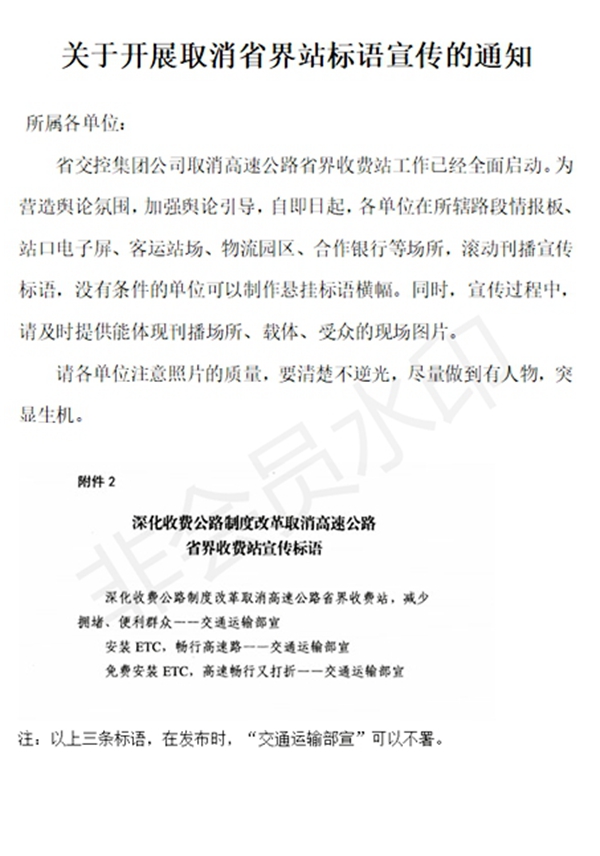 關(guān)于開展取消省界站標(biāo)語宣傳的通知