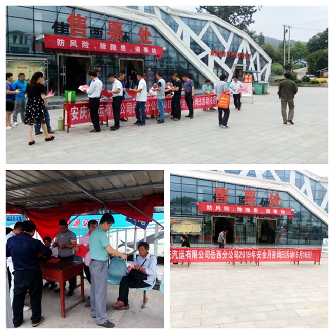 2019年6月16日是全國第十八個“安全生產(chǎn)月”咨詢?nèi),安慶公路客運中心站在站前廣場開展了大型安全咨詢?nèi)栈顒印?/span>
