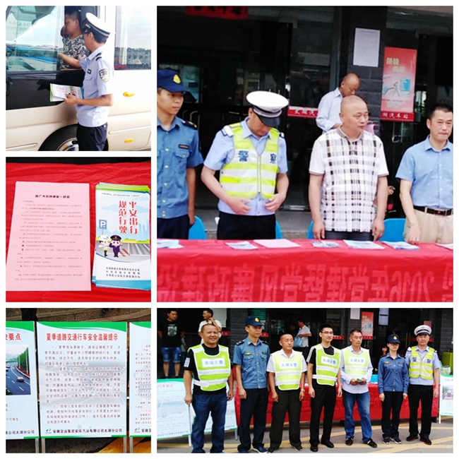 2019年6月16日,樅陽分公司班子成員及科長以上人員早早地來到客運站的大門口,擺桌子、放展板、拉橫幅、發(fā)“傳單”,為過往的市民和進站的車輛駕駛員解疑釋惑,充當宣傳安全生產(chǎn)工作的“咨詢員”。