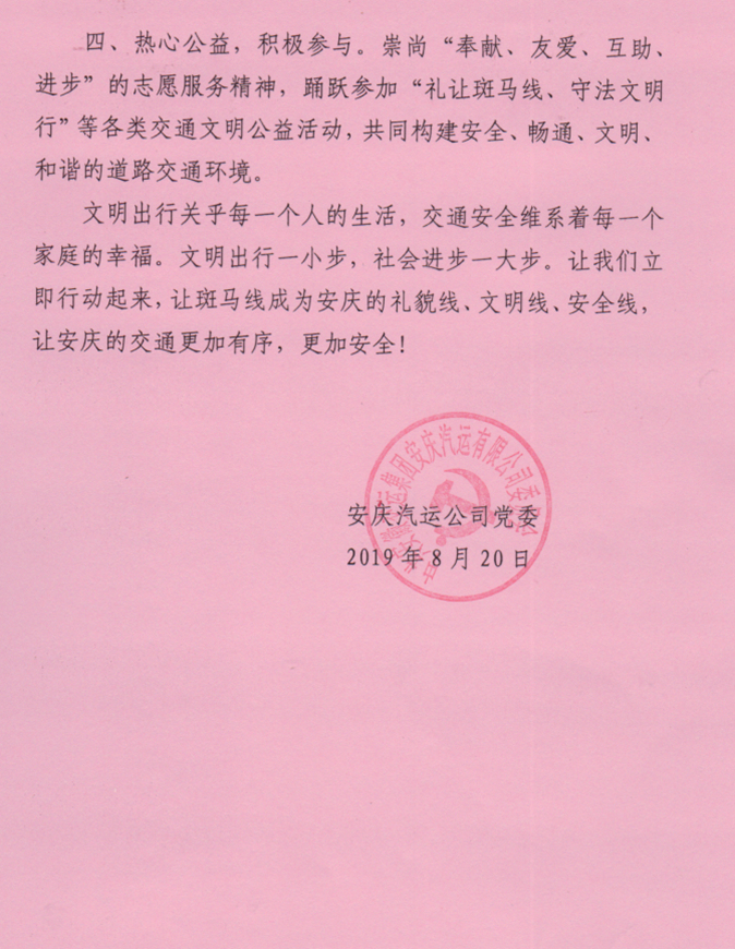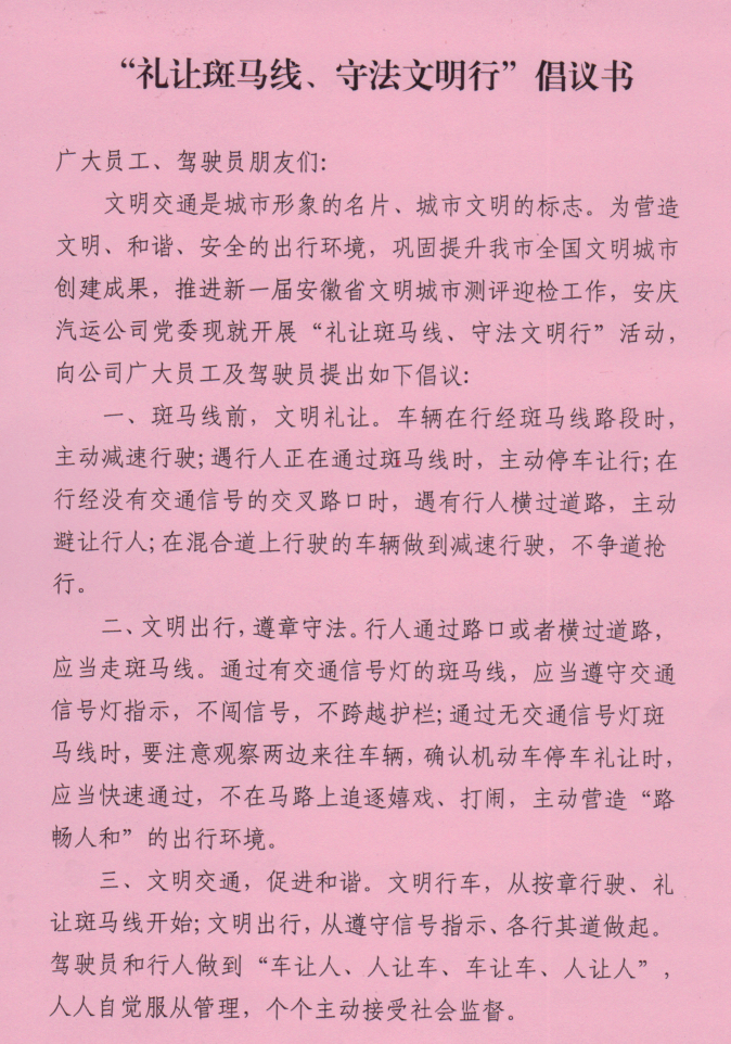 公司黨委開展“禮讓斑馬線 守法文明行”活動(dòng)倡議書