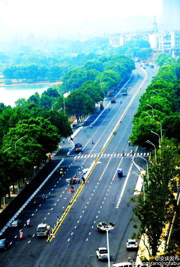 還有一條我身邊風(fēng)景獨(dú)特的大道——湖心南路,這條路經(jīng)歷了從無(wú)到有,從窄到寬,從簡(jiǎn)陋到壯觀的演變過(guò)程。1958年在大湖中間填出路基只有幾米的道路,后經(jīng)過(guò)70年、87年、97年的一次次拓寬,最近于2016年改造后,成了安慶市一條最漂亮的景觀大道之一。河堤小路,繞城而行,往來(lái)車(chē)輛如同穿梭一般,兩岸綠柳成蔭,旁邊的建筑物,掩映在綠柳蔭中,紅綠相間,景色格外迷人,街道兩旁,大樹(shù)枝繁葉茂,仿佛撐開(kāi)了一把把綠色的大傘,搭成一個(gè)連綿不斷的遮陽(yáng)棚,使行人走在林陰道上,舒適涼爽。同時(shí)它也是最重要的交通要道之一,構(gòu)成了城市的血脈和骨架,這條路也昭示了安慶這座城市繁榮的發(fā)展變化和歷程。