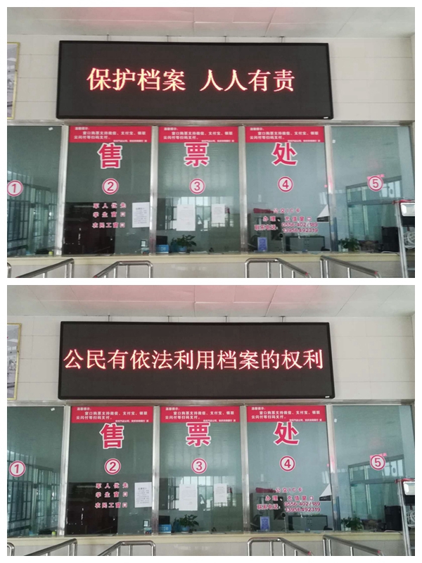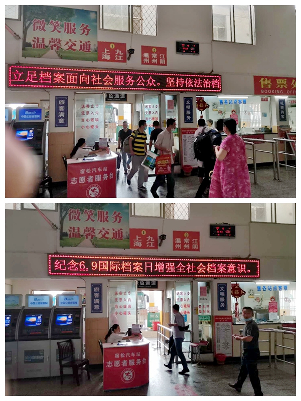 6月9日,宿松分公司在候車大廳電子顯示屏幕上不間斷播放檔案法宣傳標語。為做好新時代檔案工作營造良好的輿論氛圍,充分發(fā)揮其“記錄歷史,傳承文明,服務社會,造福人民”的獨特作用。